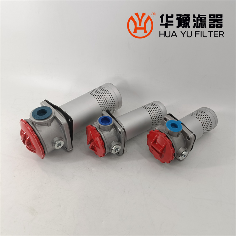 這種過濾器設有濾芯污染堵塞發訊器和油路旁通閥,當回油壓力達到0.35MPa時,發訊器發出開關信號或報警,還可直接從發訊器的表盤上讀出回油壓力值,以提示操作人員及時更換濾芯,保證系統油液的清潔度。更換濾芯只需旋開過濾器端蓋即可。當回油壓力上升至0.4MPa時,過濾器內的旁通閥便自動卸荷,以避免回油壓力過高造成整個系統工作